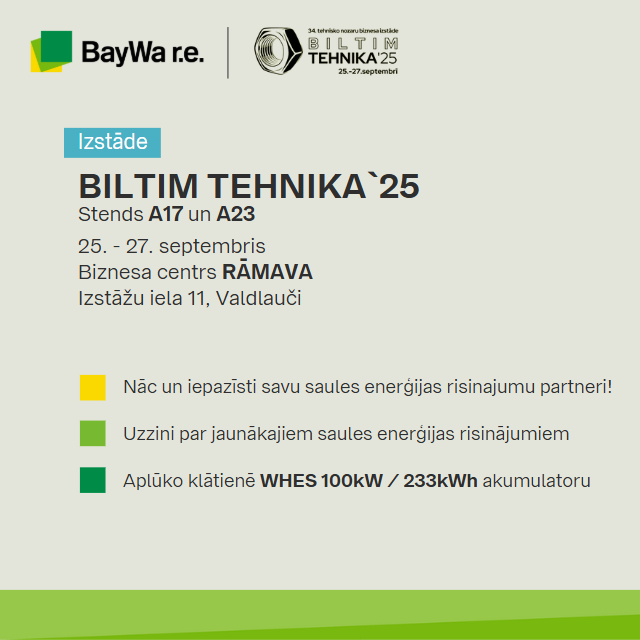 Nāc un iepazīsti BayWa r.e. Solar Systems SIA - savu saules enerģijas risinajumu partneri!